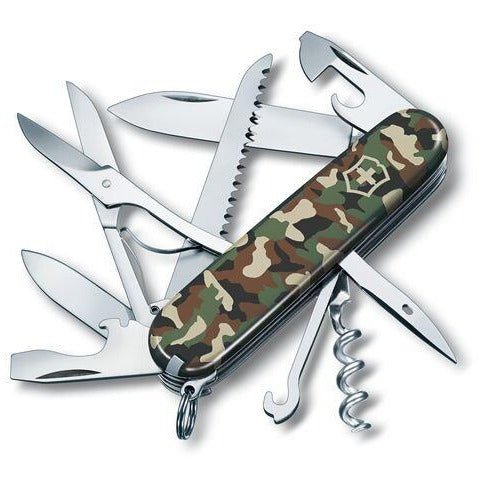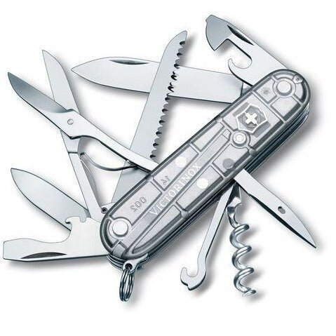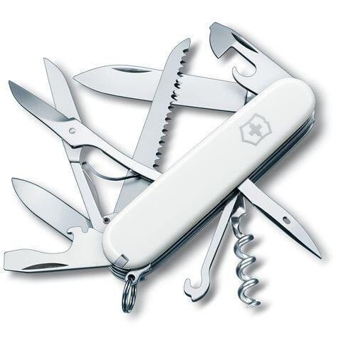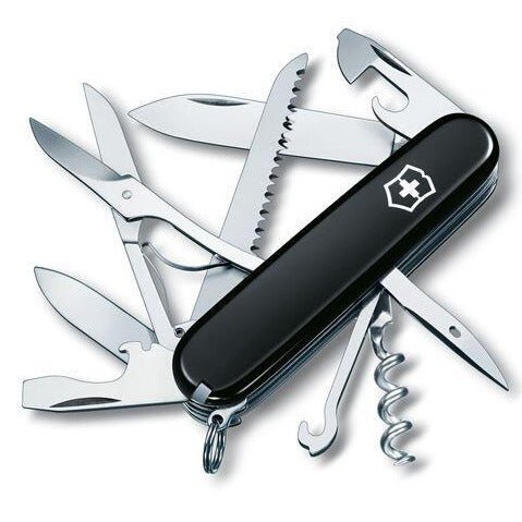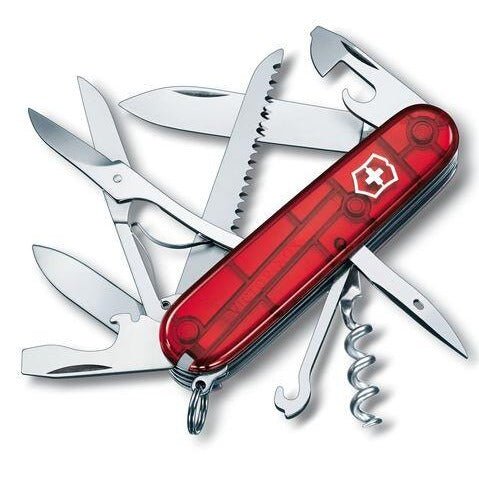 Dieses Taschenmesser besitzt 15 Funktionen die Sie aus jeder Situation retten können. Ob Äste absägen mit der Holzsäge, Seile durchschneiden mit einer der beiden Klingen oder entstandene Splitter entfernen mit der Pinzette. Das Huntsman kann alles!