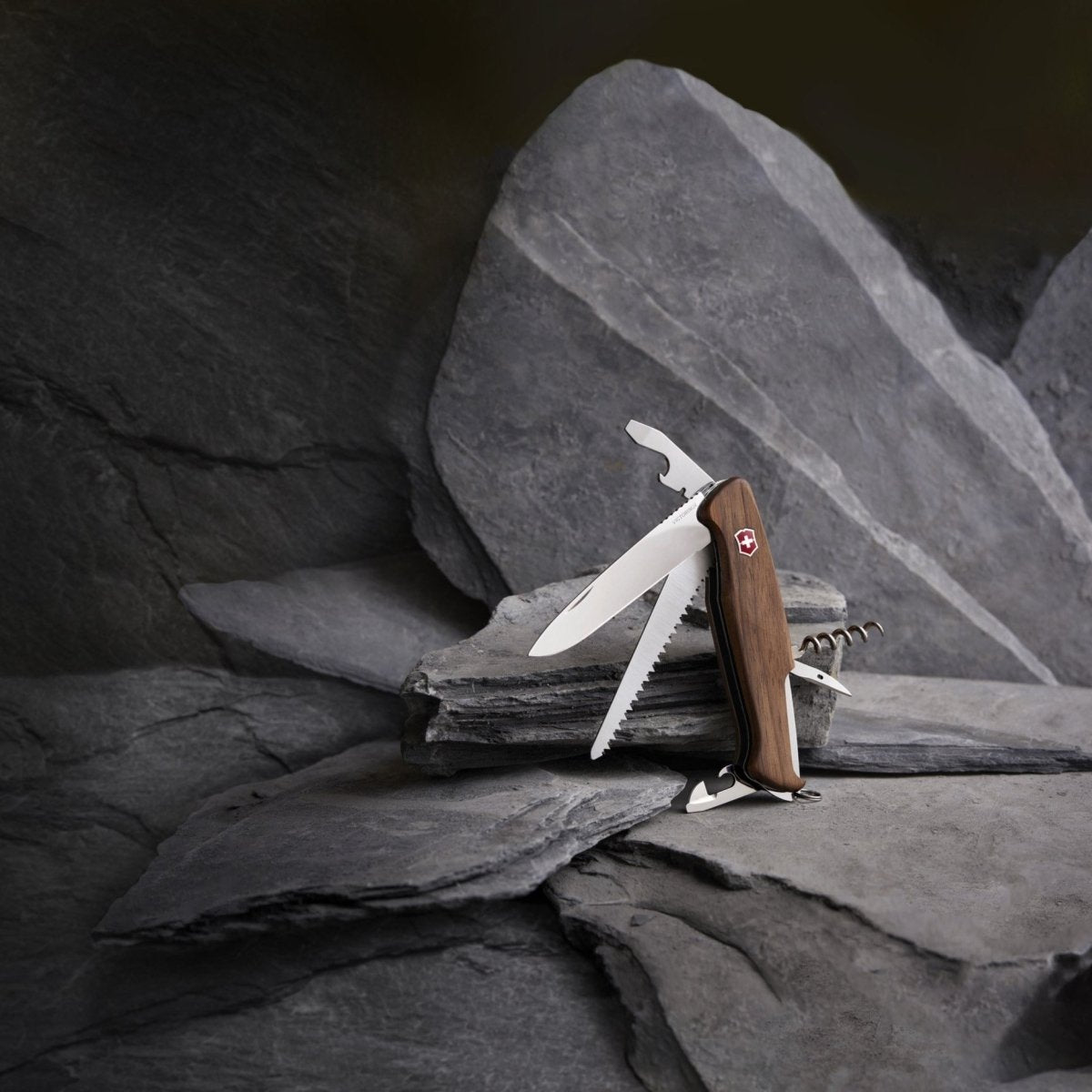 Mit diesem Taschenmesser haben Sie alles zur Hand, um so ziemlich jeden Job zu erledigen. Es ist nicht nur sehr unterstützend bei jeder Aufgabe sondern hat auch ein schönes Design mit einer Schale aus Nussbaumholz.