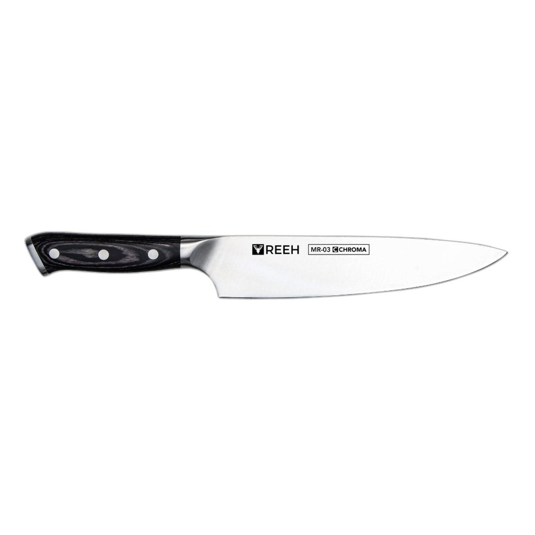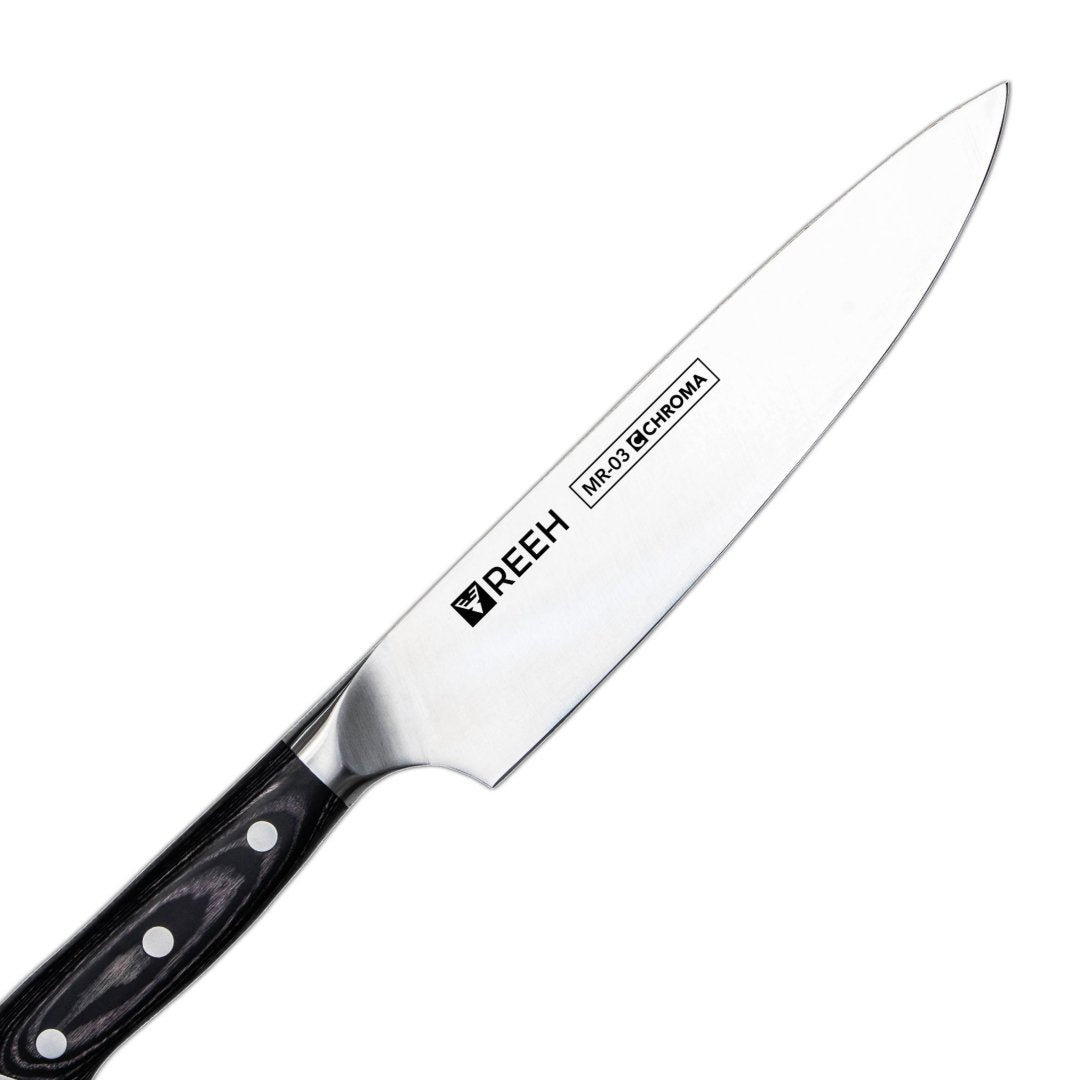 Die REEH Serie ist eine exklusive Kochmesser-Kollektion des japanischen Herstellers Chroma, entwickelt in Zusammenarbeit mit dem renommierten Fernsehkoch Mirko Reeh. Falls du ihn noch nicht kennst: Mirko Reeh ist ein Fernsehkoch, der sich wortwörtlich um die ganze Welt gekocht hat. Mit über 20 Jahren Erfahrung hat er nicht nur unzählige Kochkurse gegeben, sondern auch für die Deutsche Bundesregierung und auf dem Wirtschaftsgipfel gekocht. Jetzt hat er seine Expertise in die REEH Serie eingebracht, um dir das ultimative Küchenerlebnis zu bieten.