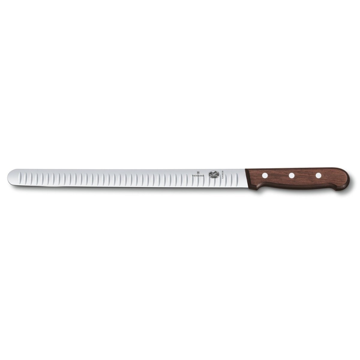Das Lachsmesser ist ein wahres Präzisionsinstrument. Es hat eine lange, dünne und flexible Klinge mit Kullenschliff auf beiden Seiten. Deshalb können Sie dünner und näher an den Gräten schneiden, als Sie es sich je erträumt hätten. So bleibt vom Lachs nichts in der Küche zurück.