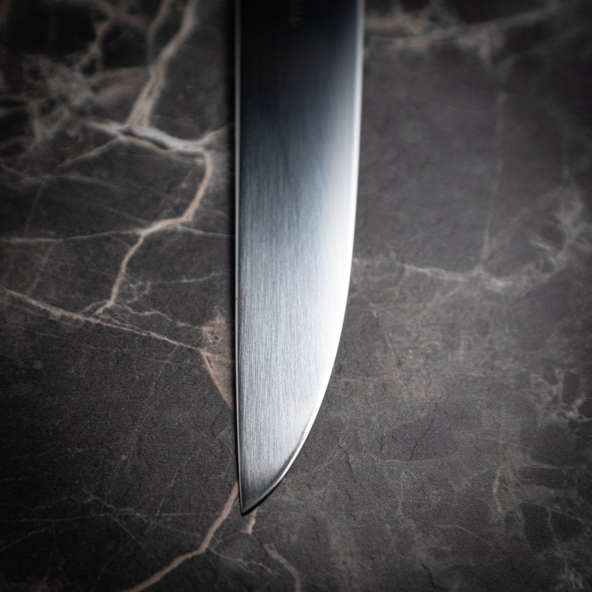 - Bewahren Sie das Messer an einem trockenen und sicheren Ort auf, idealerweise in einem Messerblock, einer Schutzhülle oder einer Magnetleiste.